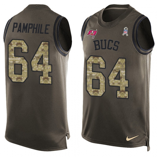 Home>NFL>Tampa Bay Buccaneers>Kevin Pamphile>Men's Nike Tampa Bay Buccaneers #64 Kevin Pamphile Limited Green Salute to Service Tank Top NFL Jersey