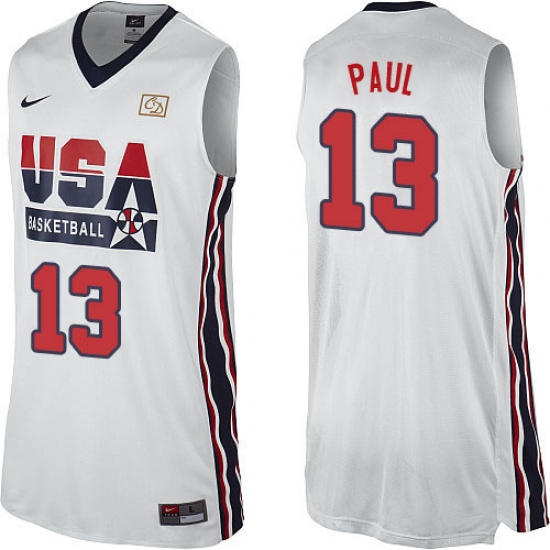 Men's Nike Team USA #13 Chris Paul Authentic White 2012 Olympic Retro Basketball Jersey