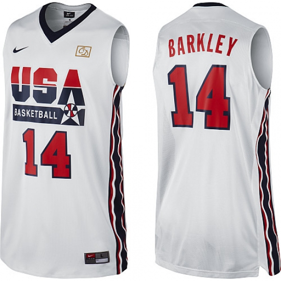 Men's Nike Team USA #14 Charles Barkley Authentic White 2012 Olympic Retro Basketball Jersey