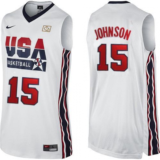 Men's Nike Team USA #15 Magic Johnson Authentic White 2012 Olympic Retro Basketball Jersey