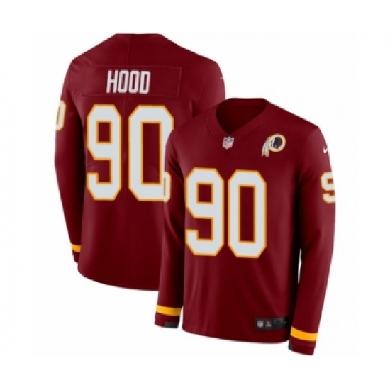 Men's Nike Washington Redskins #90 Ziggy Hood Limited Burgundy Therma Long Sleeve NFL Jersey