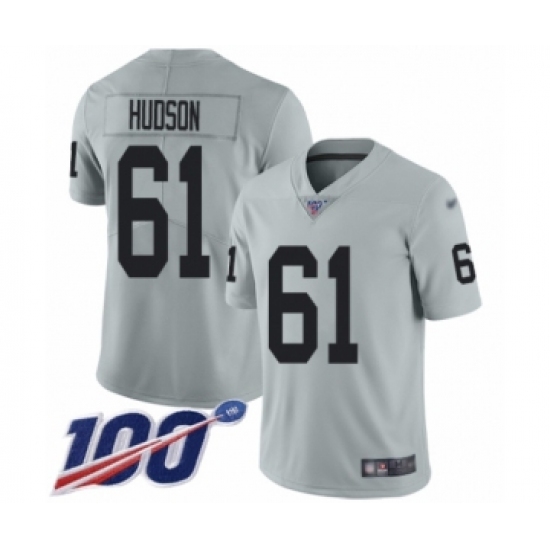 >Men's Oakland Raiders #61 Rodney Hudson Limited Silver Inverted Legend 100th Season Football Jersey