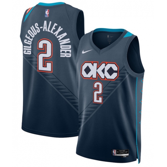 Men's Oklahoma City Thunder #2 Shai Gilgeous-Alexander Navy Stitched Basketball Jersey