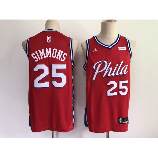 >Men's Philadelphia 76ers #25 Ben Simmons Red Basketball Swingman Jersey