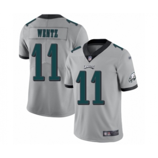 >Men's Philadelphia Eagles #11 Carson Wentz Limited Silver Inverted Legend Football Jersey