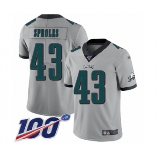 >Men's Philadelphia Eagles #43 Darren Sproles Limited Silver Inverted Legend 100th Season Football Jersey