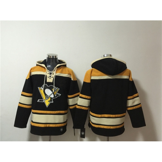 Men's Pittsburgh Penguins Blank Black Lace-Up Pullover Hoodie