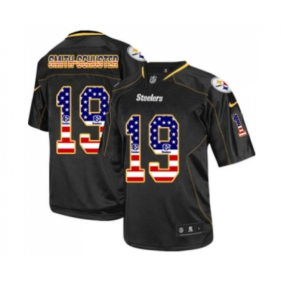 >Men's Pittsburgh Steelers #19 JuJu Smith-Schuster Elite Black USA Flag Fashion Football Jersey