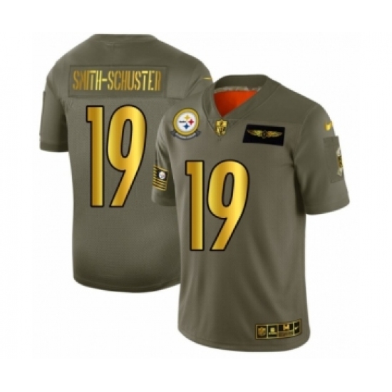 >Men's Pittsburgh Steelers #19 JuJu Smith-Schuster Limited Olive Gold 2019 Salute to Service Football Jersey