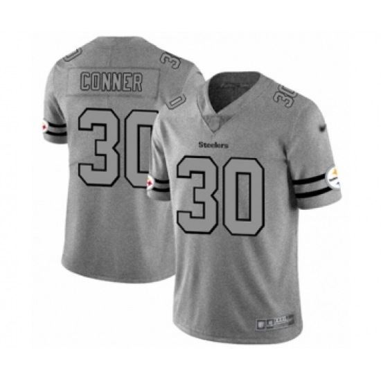 >Men's Pittsburgh Steelers #30 James Conner Limited Gray Team Logo Gridiron Football Jersey