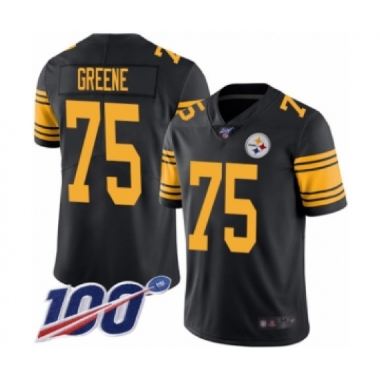 >Men's Pittsburgh Steelers #75 Joe Greene Limited Black Rush Vapor Untouchable 100th Season Football Jersey