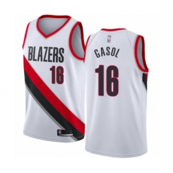 >Men's Portland Trail Blazers #16 Pau Gasol Authentic White Basketball Jersey - Association Edition