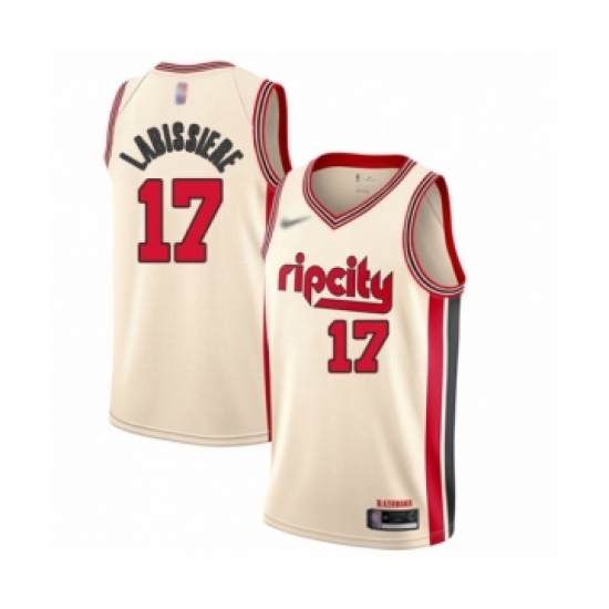 >Men's Portland Trail Blazers #17 Skal Labissiere Swingman Cream Basketball Jersey - 2019 20 City Edition