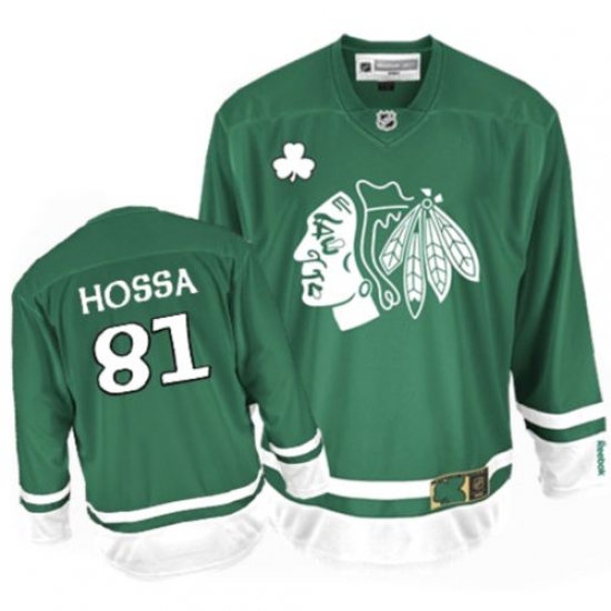 Men's Reebok Chicago Blackhawks #81 Marian Hossa Premier Green St Patty's Day NHL Jersey