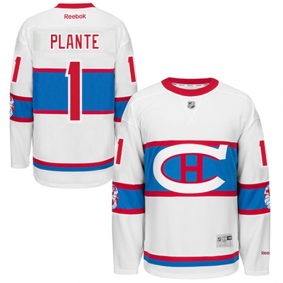 Men's Reebok Montreal Canadiens #1 Jacques Plante Authentic White 2016 Winter Classic NHL Jersey