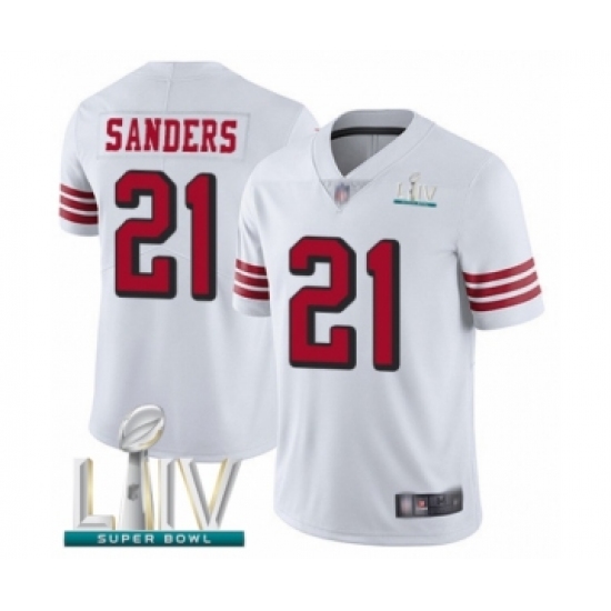 >Men's San Francisco 49ers #21 Deion Sanders Limited White Rush Vapor Untouchable Super Bowl LIV Bound Football Jersey