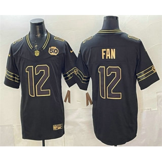 Men's Seattle Seahawks #12 Fan Black Gold 2025 FUSE 50th Season Limited Stitched Jersey