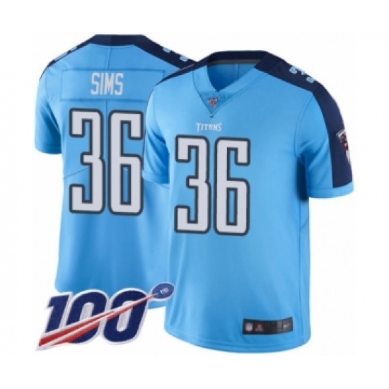 Men's Tennessee Titans #36 LeShaun Sims Limited Light Blue Rush Vapor Untouchable 100th Season Football Jersey