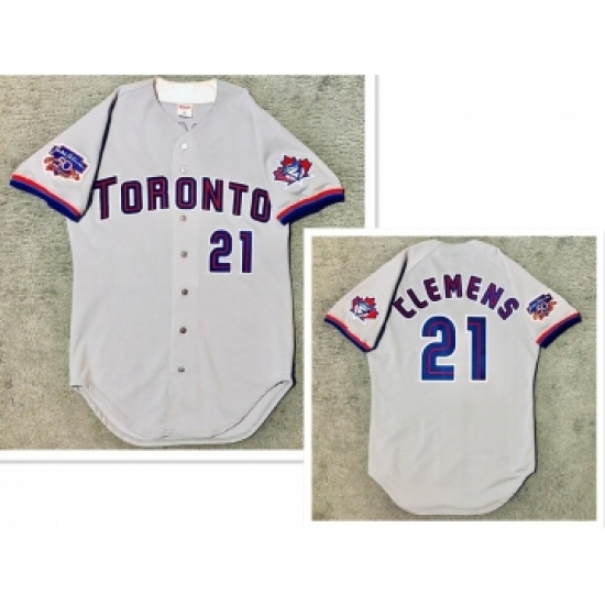 Men's Toronto Blue Jays #21 Roger Clemens Grey Stitched MLB Jersey