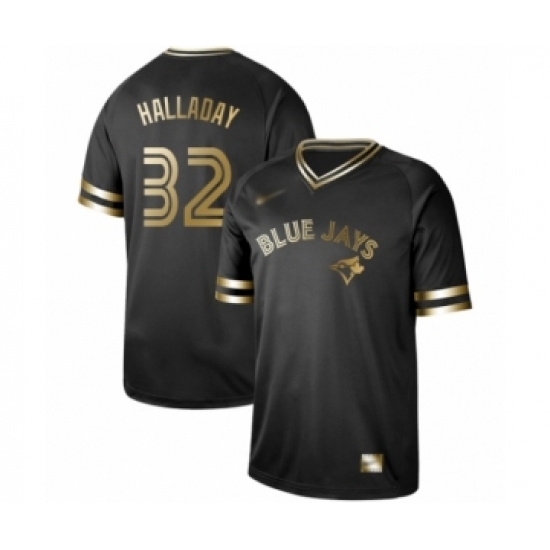 >Men's Toronto Blue Jays #32 Roy Halladay Authentic Black Gold Fashion Baseball Jersey
