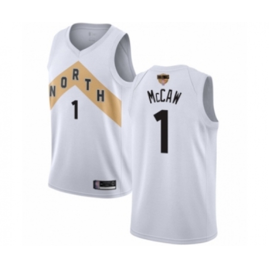 >Men's Toronto Raptors #1 Patrick McCaw Swingman White 2019 Basketball Finals Bound Jersey - City Edition