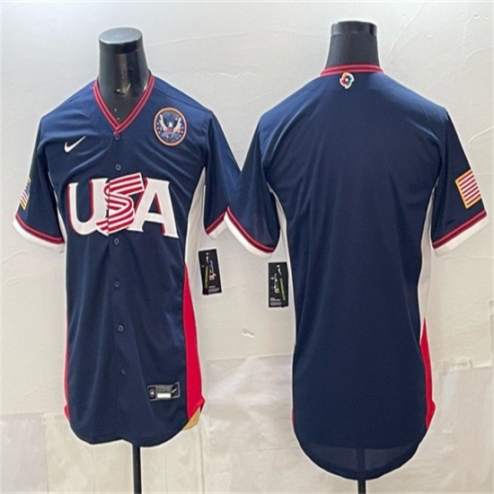 Men's USA Baseball Blank Navy 2026 World Baseball Classic United States 250th Anniversary Road Stadium Stitched Jersey