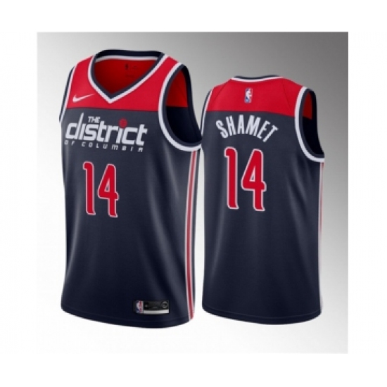 >Men's Washington Wizards #14 Landry Shamet Navy 2023 Draft Statement Edition Stitched Jersey