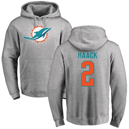 >NFL Nike Miami Dolphins #2 Matt Haack Ash Name & Number Logo Pullover Hoodie