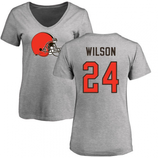 >NFL Women's Nike Cleveland Browns #24 Howard Wilson Ash Name & Number Logo T-Shirt