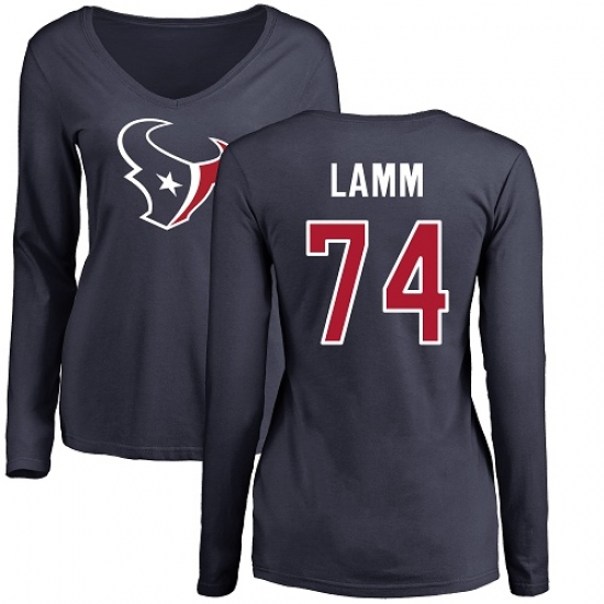 NFL Nike Houston Texans #74 Kendall Lamm Navy Blue Backer Long Sleeve T-Shirt