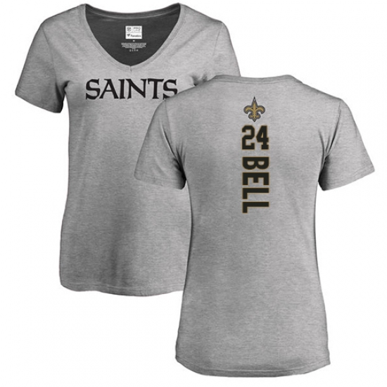 >NFL Women's Nike New Orleans Saints #24 Vonn Bell Ash Backer V-Neck T-Shirt