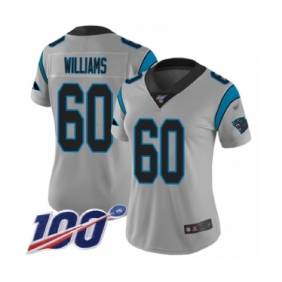 >Women's Carolina Panthers #60 Daryl Williams Silver Inverted Legend Limited 100th Season Football Jersey