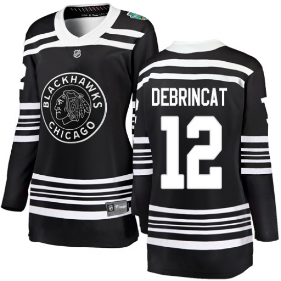 >Women's Chicago Blackhawks #12 Alex DeBrincat Black 2019 Winter Classic Fanatics Branded Breakaway NHL Jersey