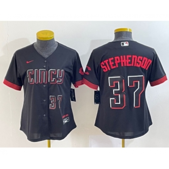 Women's Cincinnati Reds #37 Tyler Stephenson Number Black 2023 City Connect Cool Base Stitched Jersey2