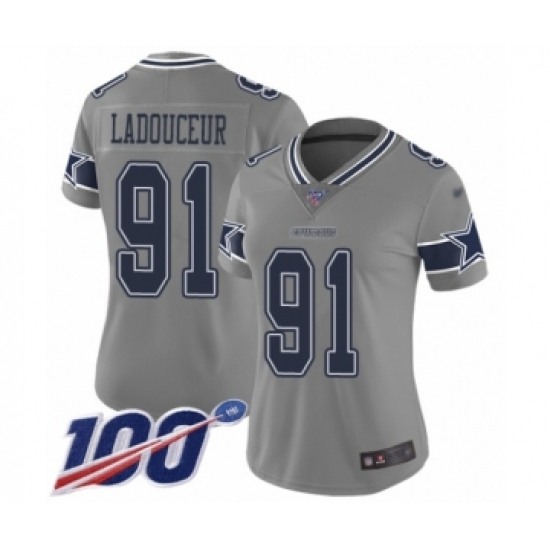 >Women's Dallas Cowboys #91 L. P. Ladouceur Limited Gray Inverted Legend 100th Season Football Jersey