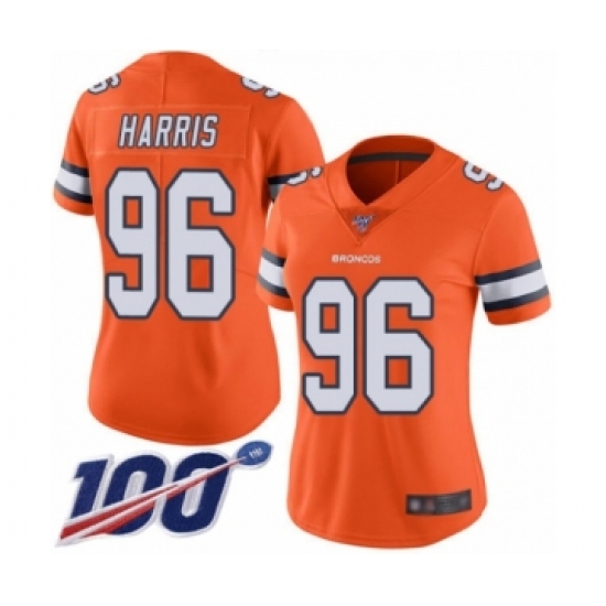 Women's Denver Broncos #96 Shelby Harris Limited Orange Rush Vapor Untouchable 100th Season Football Jersey
