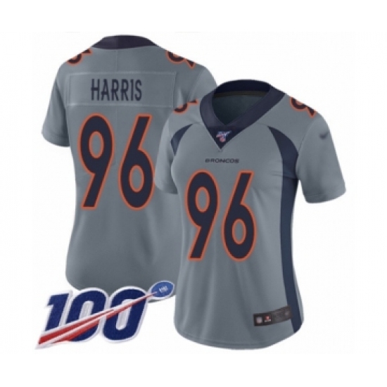 Women's Denver Broncos #96 Shelby Harris Limited Silver Inverted Legend 100th Season Football Jersey