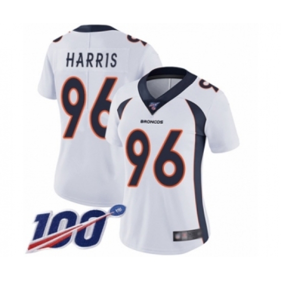 Women's Denver Broncos #96 Shelby Harris White Vapor Untouchable Limited Player 100th Season Football Jersey