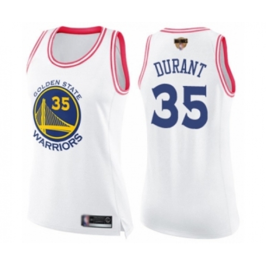 Women's Golden State Warriors #35 Kevin Durant Swingman White Pink Fashion 2019 Basketball Finals Bound Basketball Jersey