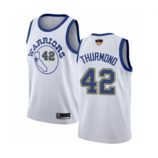 >Women's Golden State Warriors #42 Nate Thurmond Swingman White Hardwood Classics 2019 Basketball Finals Bound Basketball Jersey