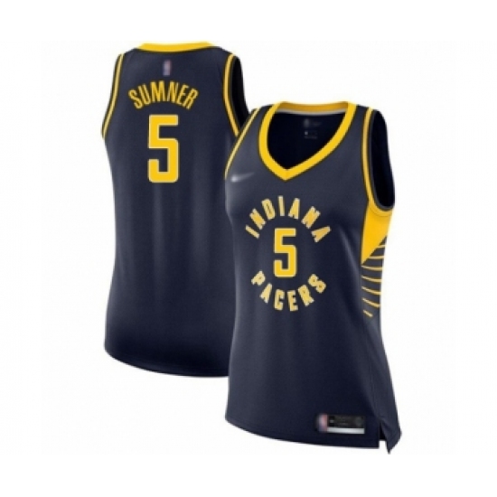>Women's Indiana Pacers #5 Edmond Sumner Swingman Navy Blue Basketball Jersey - Icon Edition