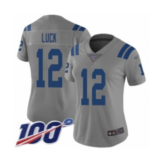>Women's Indianapolis Colts #12 Andrew Luck Limited Gray Inverted Legend 100th Season Football Jersey