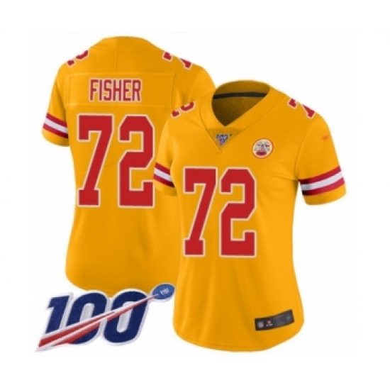 >Women's Kansas City Chiefs #72 Eric Fisher Limited Gold Inverted Legend 100th Season Football Jersey
