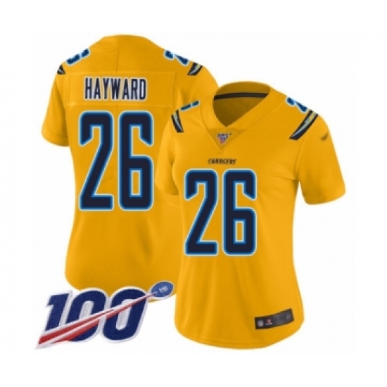 Women's Los Angeles Chargers #26 Casey Hayward Limited Gold Inverted Legend 100th Season Football Jersey