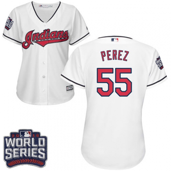 Women's Majestic Cleveland Indians #55 Roberto Perez Authentic White Home 2016 World Series Bound Cool Base MLB Jersey