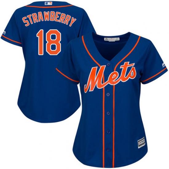 Home>MLB>New York Mets>Darryl Strawberry>Women's Majestic New York Mets #18 Darryl Strawberry Replica Royal Blue Alternate Home Cool Base MLB Jersey