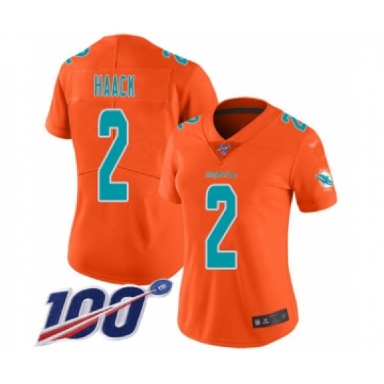 >Women's Miami Dolphins #2 Matt Haack Limited Orange Inverted Legend 100th Season Football Jersey