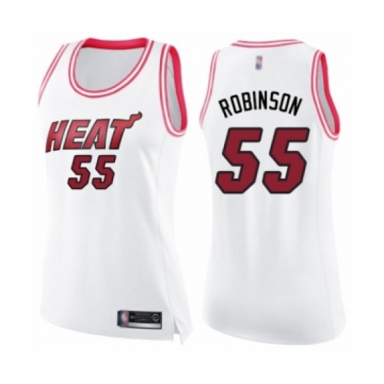 >Women's Miami Heat #55 Duncan Robinson Swingman White Pink Fashion Basketball Jersey