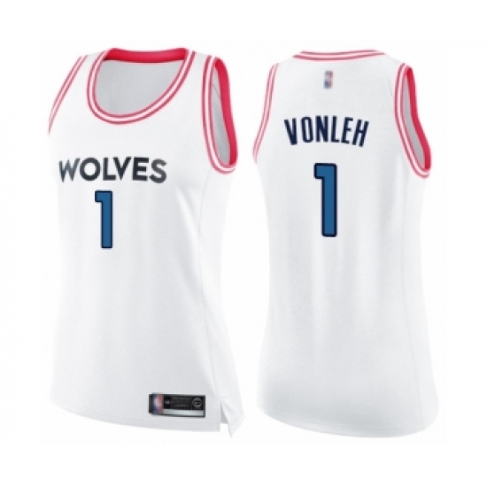 >Women's Minnesota Timberwolves #1 Noah Vonleh Swingman White Pink Fashion Basketball Jersey
