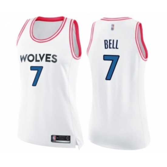 >Women's Minnesota Timberwolves #7 Jordan Bell Swingman White Pink Fashion Basketball Jersey